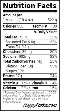 Calories: 538kcalCarbohydrates: 74gProtein: 37gFat: 15.1gSaturated Fat: 6.6gTrans Fat: 0.2gCholesterol: 89mgSodium: 1982mgFiber: 13gSugar: 17gVitamin A: 37IUVitamin C: 14mgCalcium: 72mgIron: 15mg