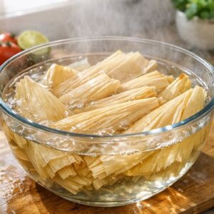 Fill a large bowl or your kitchen sink with very hot water—as hot as your tap water goes, ideally around 140°F. Submerge all 8 ounces of dried corn husks and weight them down with a plate so they stay underwater. Set a timer for 30 minutes. While they soak, you’re going to prepare your fillings (if making them fresh) and set up your workspace. This is the perfect time to identify your three filling options, because once the husks are ready, you won’t have much idle time.